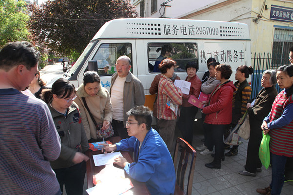 公司服務(wù)人員在該小區(qū)院內(nèi),一邊在流動(dòng)服務(wù)車內(nèi)為用戶辦理居民采暖證,一邊在咨詢服務(wù)臺(tái)為用戶提供專業(yè)的供熱咨詢服務(wù),一邊在供熱宣傳展板前講解供熱政策,一邊向用戶發(fā)放供熱常識(shí)宣傳頁。整個(gè)服務(wù)現(xiàn)場氣氛熱烈、井然有序,深受小區(qū)居民和用戶的歡迎和贊揚(yáng)。